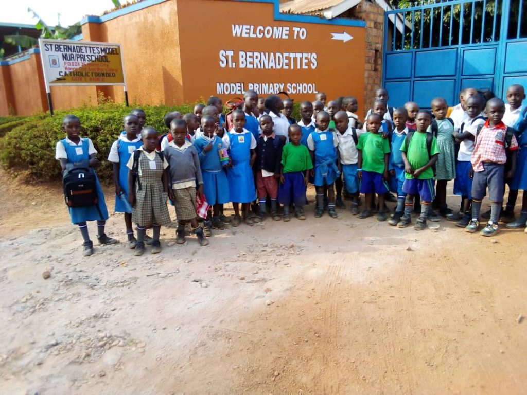 *Wir unterstützen den Aufbau der „Einen Welt“ durch eine Partnerschaft mit der St. Bernadetta-Schule in Hoima/Uganda, um die Ausbildung von Waisenkindern zu ermöglichen.
