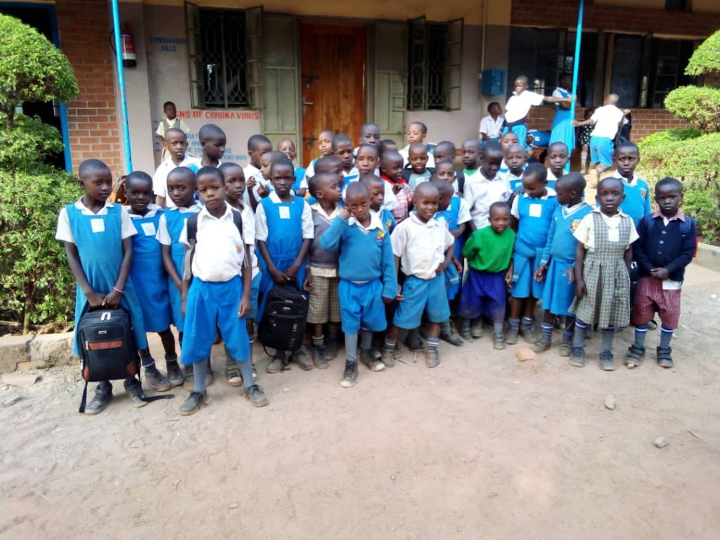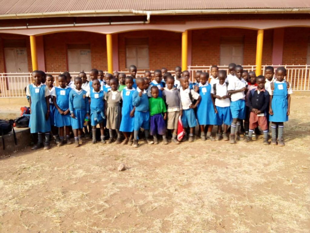 Kinder der St. Bernadetta Schule in Hoima/Uganda grüßen ihre Paten. (Juli 2023)