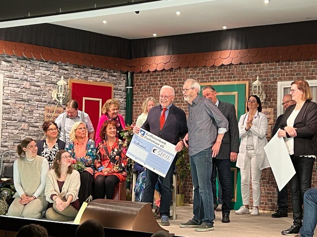 Die Kolpingtheatergruppe beendet die Aufführung des plattdeutschen Stückes“De (un)ehrenwerte Noberschkuo“ . Aus dem Erlös wurde ein Betrag von 500 € an den Kolpingfamilienhilfsfonds gespendet. Vielen Dank dafür.
