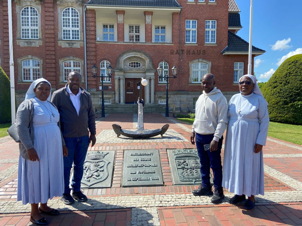 Die Stadt Papenburg durfte in Person von Bürgermeisterin Vanessa Gattung eine Delegation aus Hoima, Uganda, am 19. Mai im neuen Papenburger Verwaltungsgebäude empfangen. Die Gäste waren aufgrund des 100-jährigen Jubiläums der Kolpingfamilie St. Michael in Papenburg vom Kolping eingeladen worden und besichtigten Papenburg.